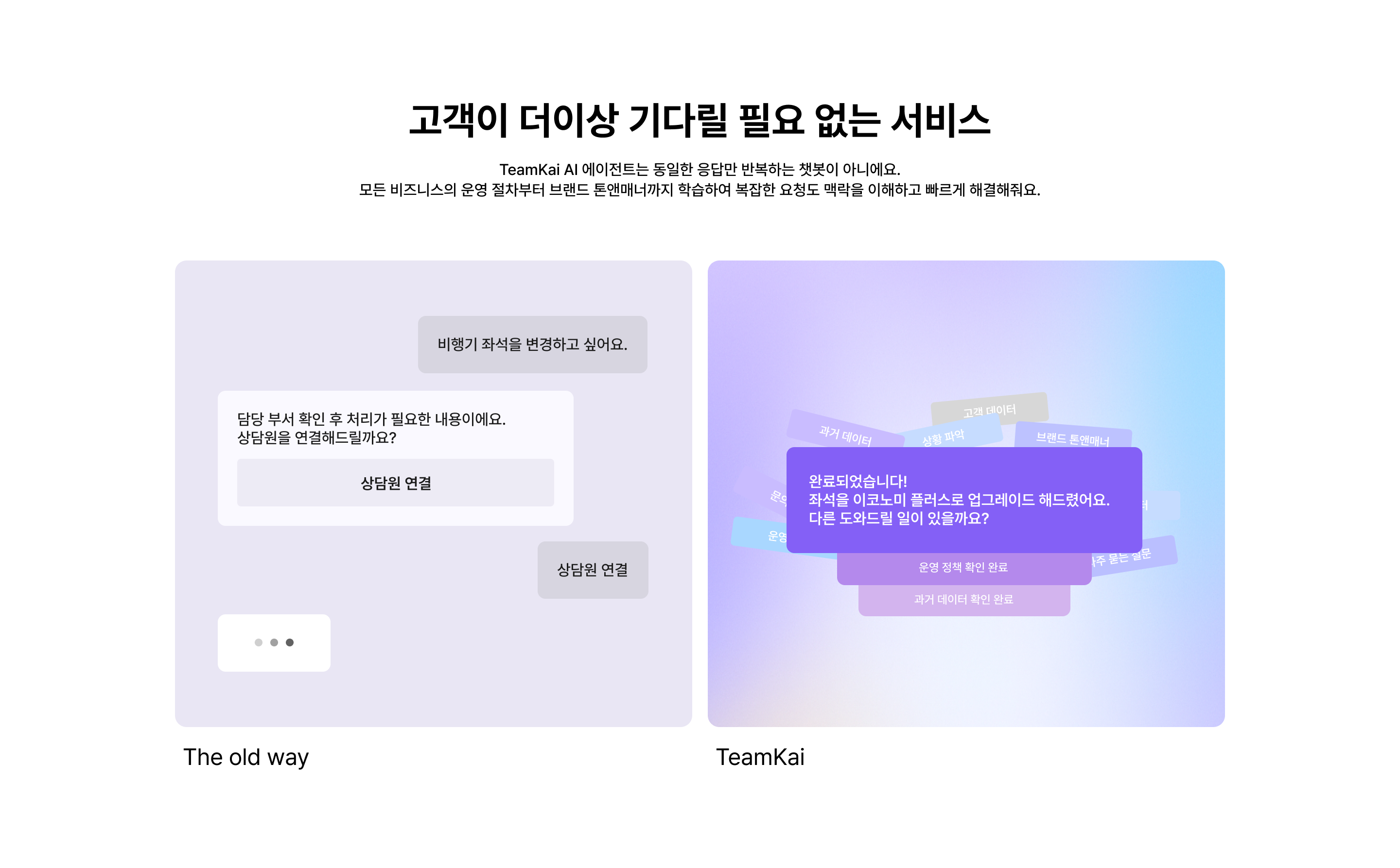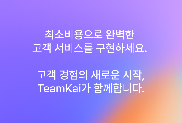 최소비용으로 완벽한 고객 서비스를 구현하세요.고객 경험의 새로운 시작,TeamKai가 함께합니다.